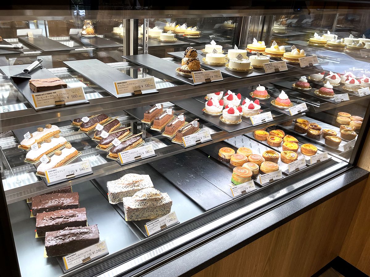 常時たくさんのパンやケーキが並ぶショーケース。種類も豊富で、見ているだけでワクワク!夕方まで店内でパンを焼き上げているので、1日中おいしそうな香りが漂います。
