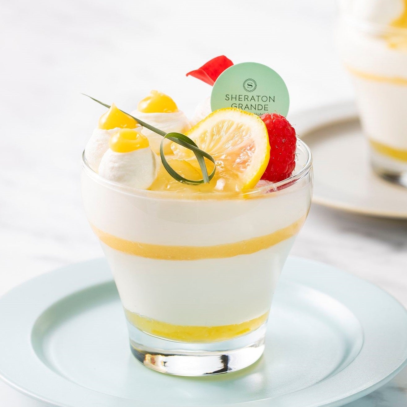レモンジャムに、フロマージュブランムース、レモンクリームを重ねたグラスに、レモンのはちみつ漬け、レモンクリーム、生クリーム、フランボワーズをのせました。ジャム、クリーム、はちみつ漬けと様々なテイストのレモンのアンサンブルを、さっぱりとしたフロマージュブランとともにお楽しみください。