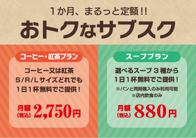 ※店内飲食のみ。パンと同時ご購入時のみご利用いただけます。