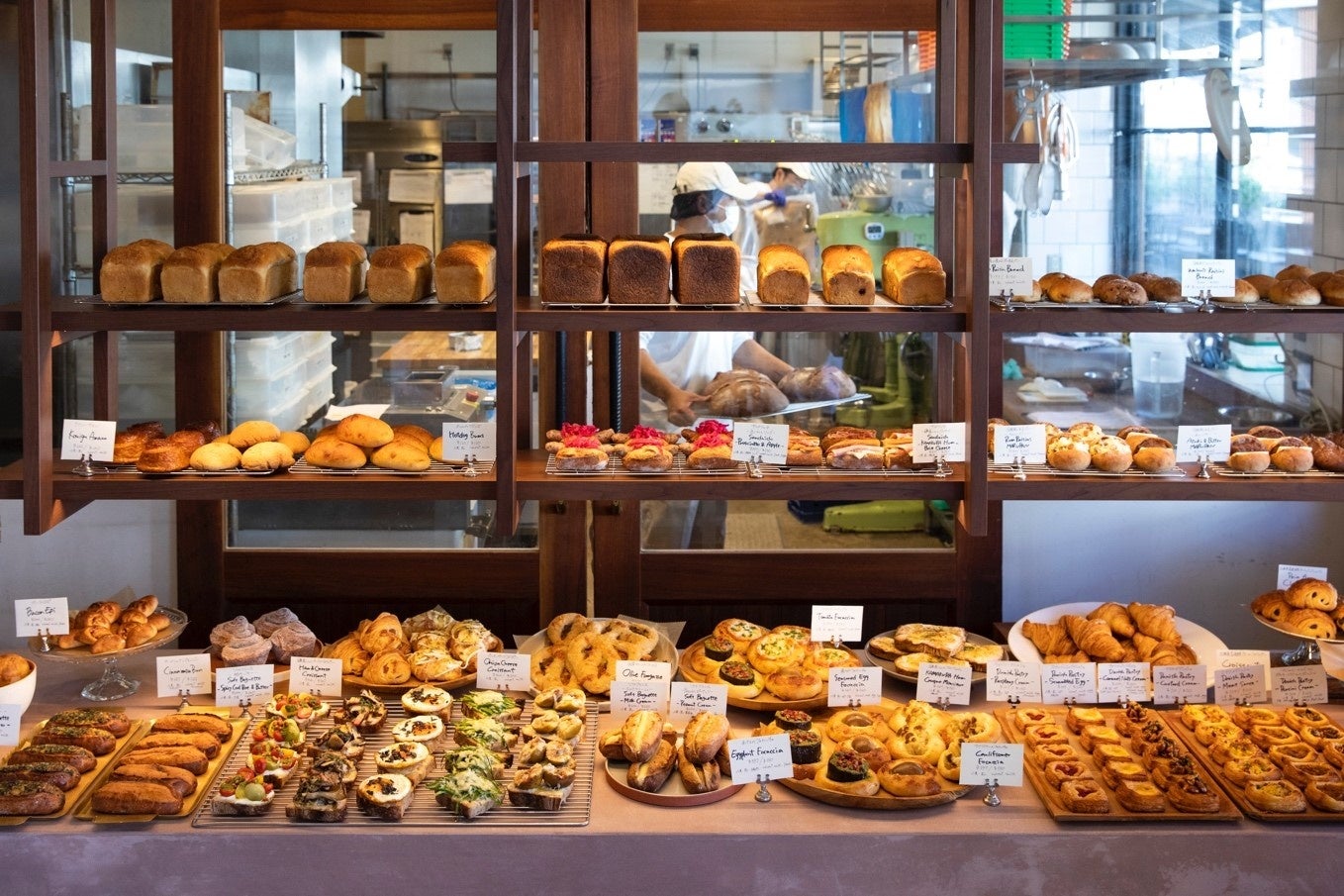 ベーカリーとして日常的に利用いただけるように、カンパーニュに加えて、より幅広い年齢層の方に楽しんでいただけるパンが新たに登場します。人気の全粒粉の食パンやまるぱんシリーズ、クロワッサンなどはそのままに、新たなバリエーションが追加されました。