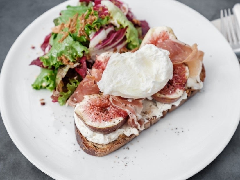 シーズナルの限定メニューでは、旬のフルーツを使用したタルティーヌを提供し、第一回目のメニューではイチジクと生ハムを大胆にのせています。