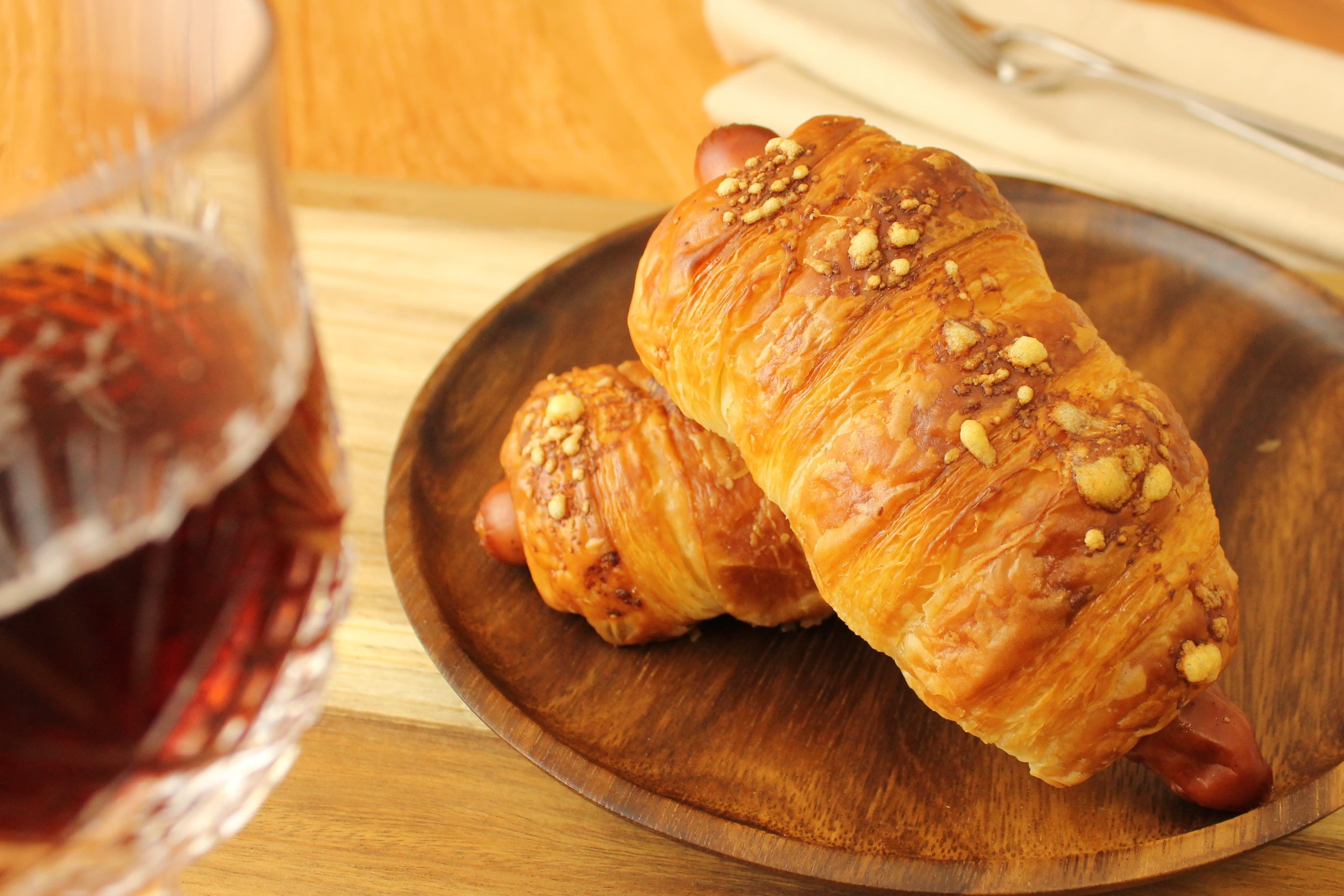 ポークウインナーにデニッシュ生地を巻き、パルメザンチーズをトッピングしてさっくりと焼き上げました。濃縮されたウインナーの塩味と、ふわっと鼻に抜けるチーズの香ばしさには、濃厚な赤ワインやビールが相性ピッタリ。