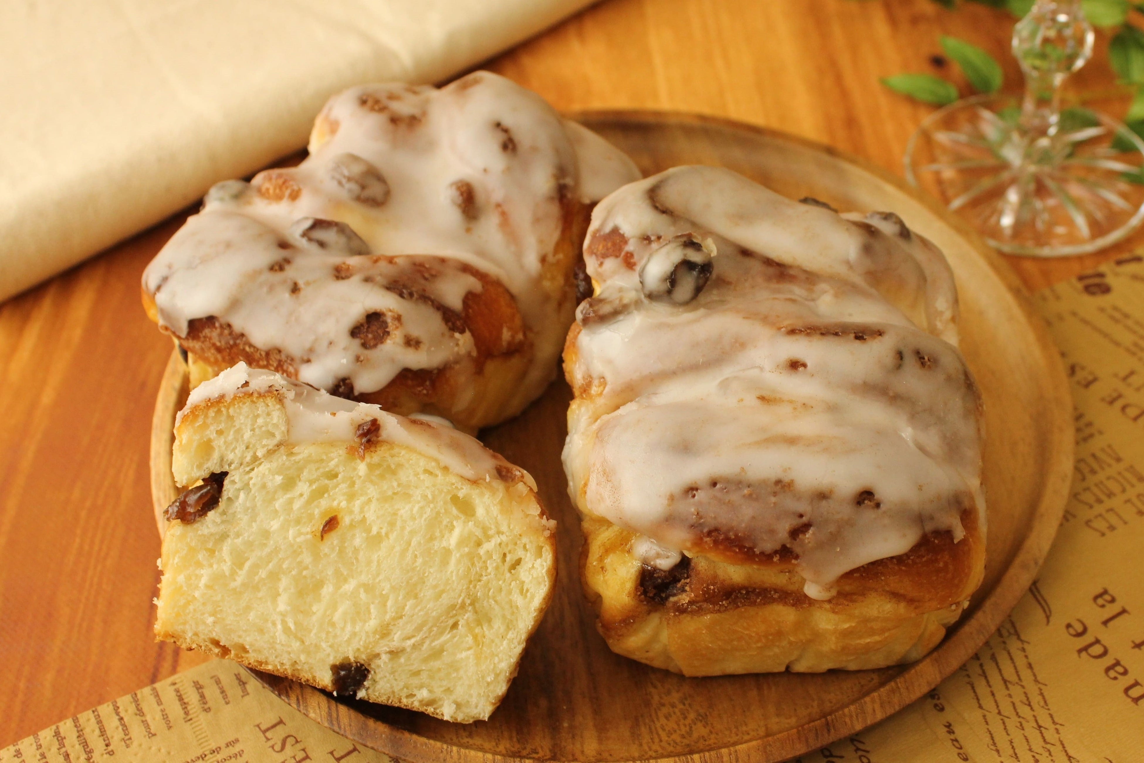 ラム酒漬けレーズンをたっぷりと巻き込み、シナモンシュガーをトッピングして焼き上げました。独特の酸味と甘みが持ち味のレーズンには、同じくフルーティーなワインを合わせるのがおすすめ。シナモンを入れたホットワインを用意して、秋の夜長にゆったりとした時間を過ごすのも贅沢ですね。