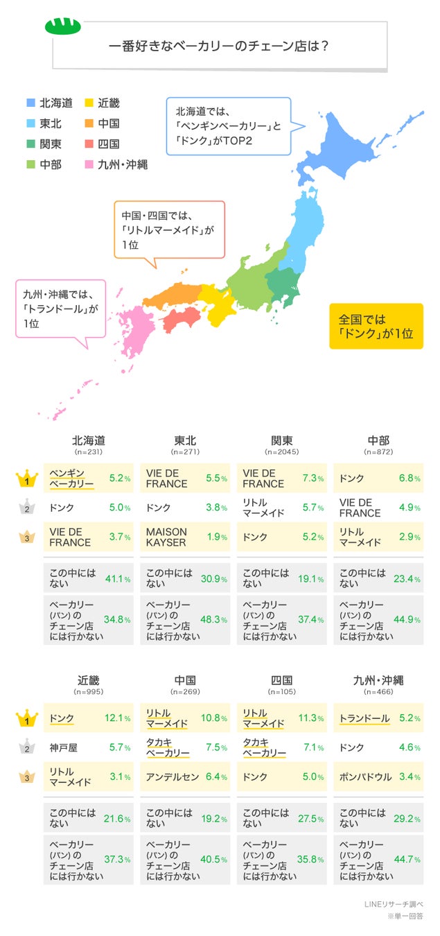 からの記事と詳細 ( 【LINEリサーチ】一番好きなベーカリーのチェーン店は「ドンク」が全国1位、続いて「VIE DE FRANCE」「リトル ... - PR TIMES )