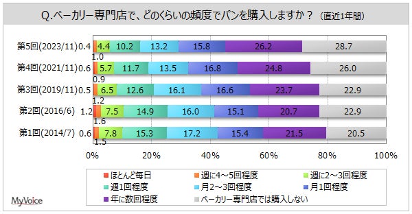 マイボイスコム株式会社(東京都千代田区、代表取締役社長:高井和久)は、5回目となる『パン屋・ベーカリーショップの利用』に関するインターネット調査を2023年11月1日~5日に実施しました。調査結果をお知らせします。