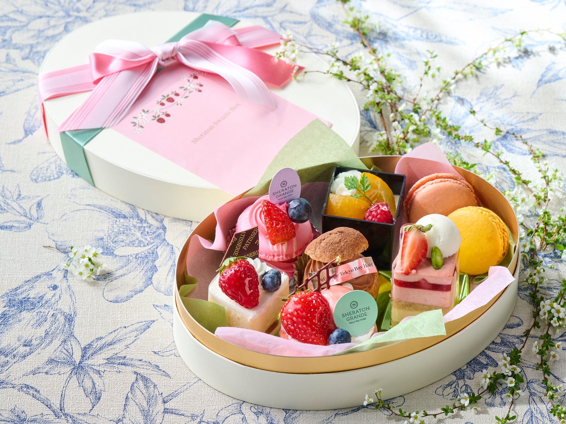8種のミニスイーツが詰まった毎月人気の「#シェラトンスイーツボックス」。箱を開けた瞬間に心ときめく、春のピクニックにもぴったりのカラフルなミニスイーツを集めました。